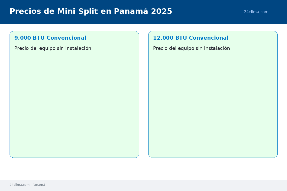 Ambiente marino y corrosión: Propiedades en la franja costera, desde Amador hasta Punta Pacífica y Coco del Mar, están expuestas a brisa salina que corroe los componentes metálicos más rápido de lo normal. En esos casos se recomienda usar soportes de acero galvanizado o aluminio, y equipos con tratamiento anti-corrosión en el condensador, lo cual eleva el precio del equipo entre $100 y $200.